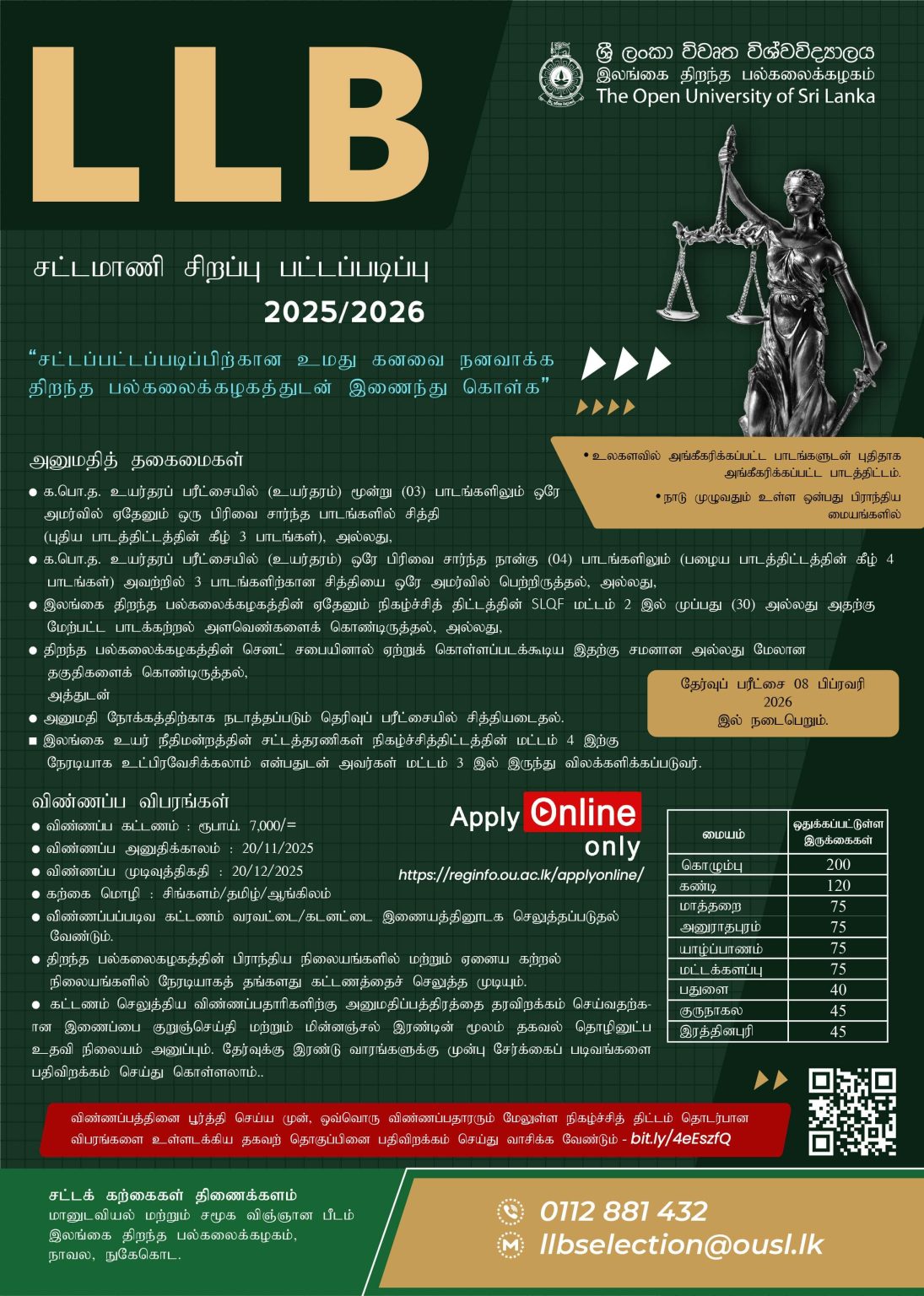 #OUSL #OpenUniversitySriLanka #LLB #LawDegree #LegalStudies #HigherEducation